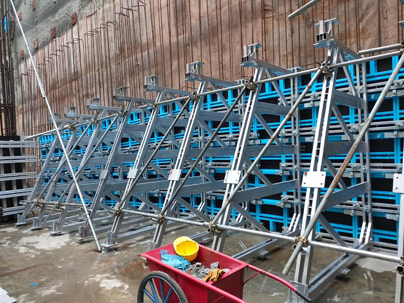 A estrutura de alumínio reduz o peso da cofragem e é de alta resistência. Em combinação com contraplacado de 12mm de espessura, pode suportar até 60KN/m2 de pressão de concreto.